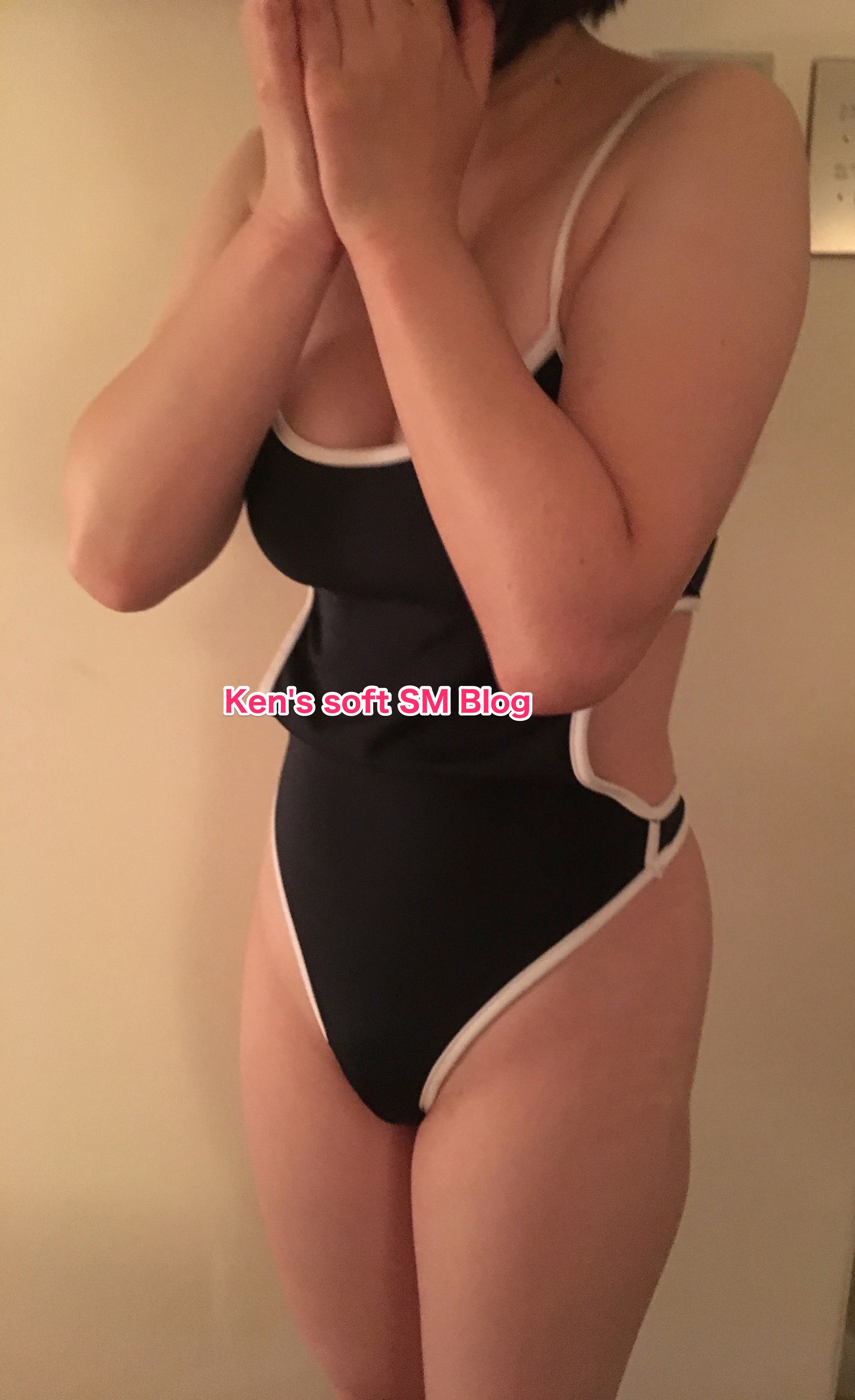 顔を覆いながらベッドサイドに立つRは全裸で拘束された時よりも、本当に恥ずかしそうだ。全裸を見られるより、スクール水着を着た姿を見られる方が恥ずかしいのは中々に興味深い。